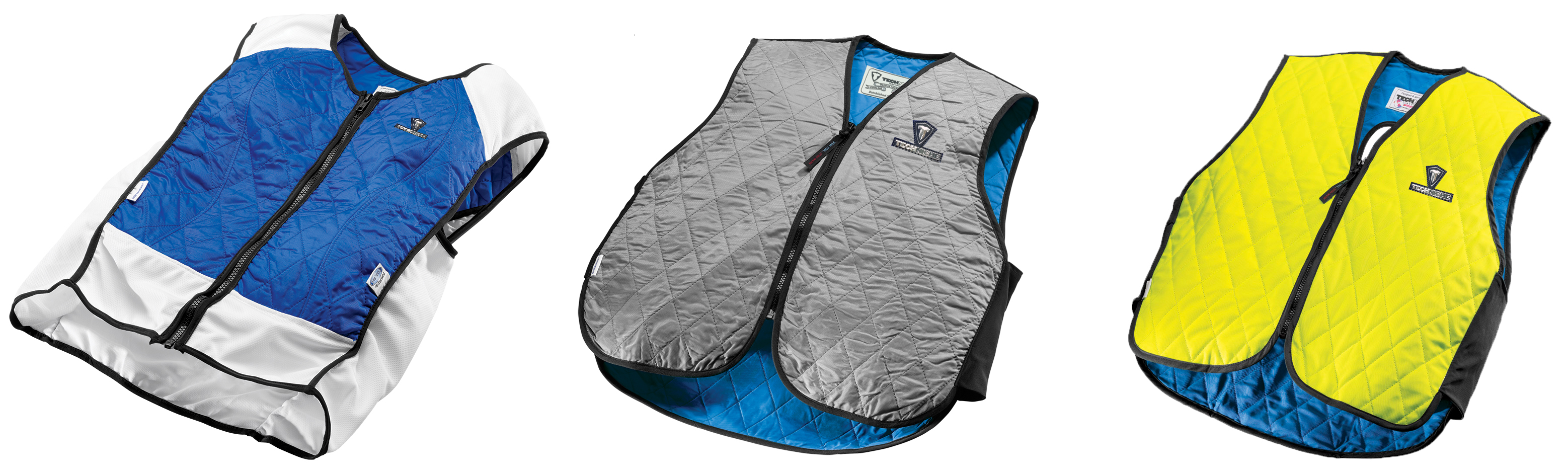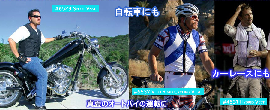 HyperKewl(ハイパークール)は、汗の代わりに水道水等の水を含ませた特殊な繊維でカラダを自然に冷やすギアですが、お手持ちのファン付きベストの下に着用して頂くと、乾いても水分を幾らでも追加できるので、工事現場等の過酷な環境でも安全に快適に過ごして頂けます。